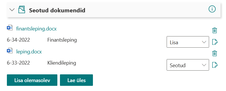 Tahtes seotud dokumenti eemaldada dokumendist, vajutage seotud dokumendi parema külje peal oleva „prügikasti" ikoonile.