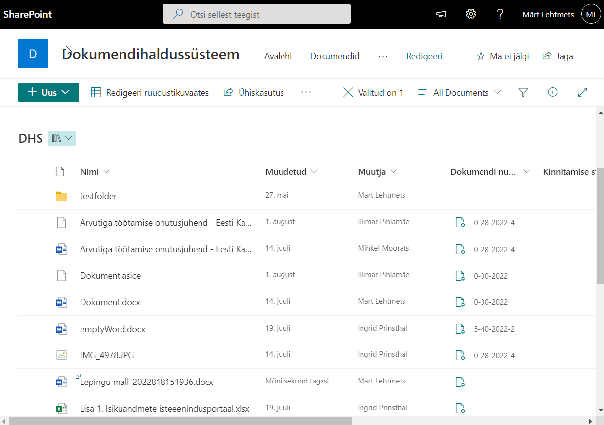 Vajutage „Halda dokumenti” nuppu, mis asub dokumendi numbri veerus või käsureal