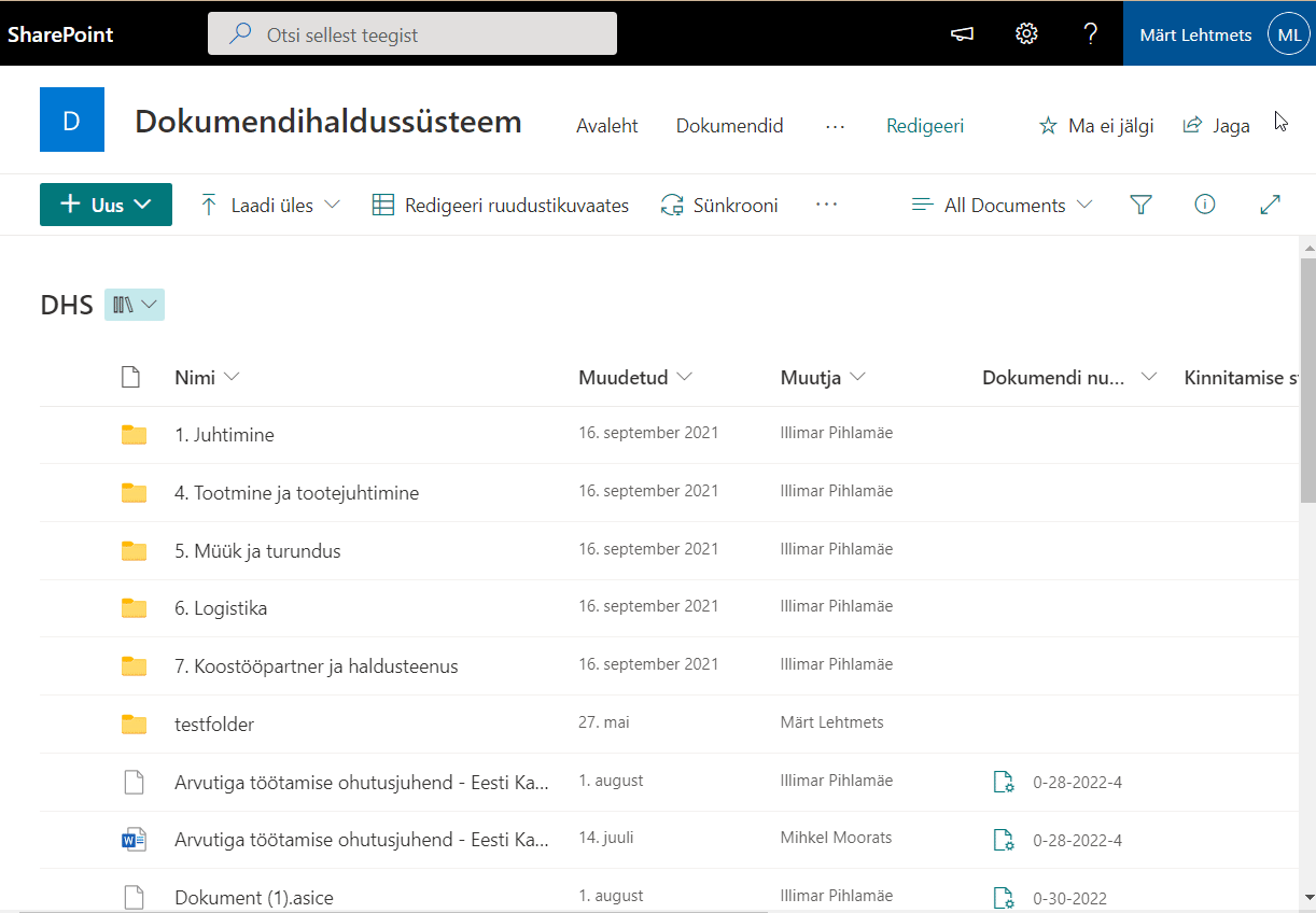 Vajutage „halda dokumenti” nupule, mis asub dokumendi numbri veerus või käsutiba peal