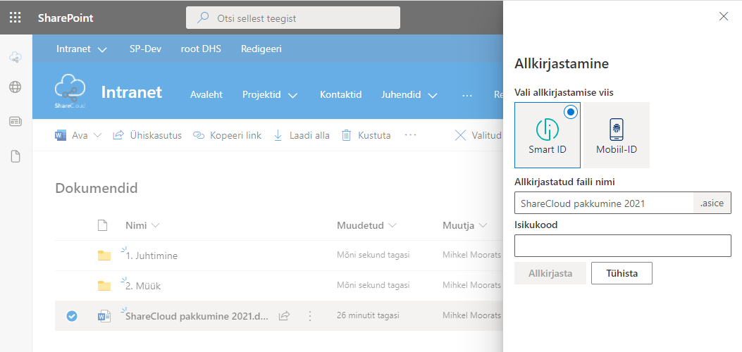vali dokument või dokumendid, mida soovid allkirjastada ning klõpsa nupul „Allkirjasta", mis asub käsureal