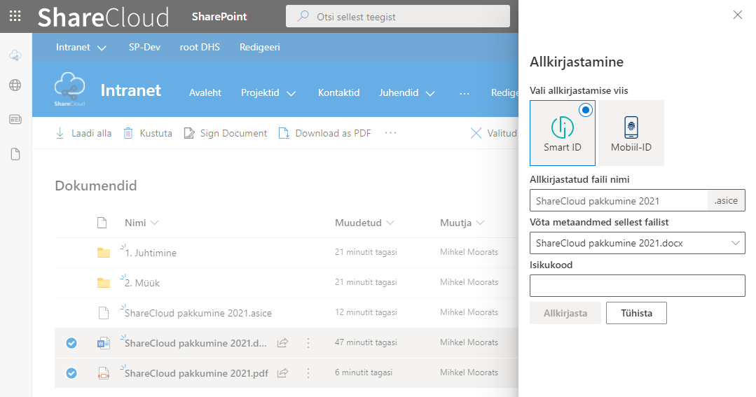 Allkirjastamise käigus kantakse kõik valitud dokumendi andmed üle ka allkirjastatud failile.