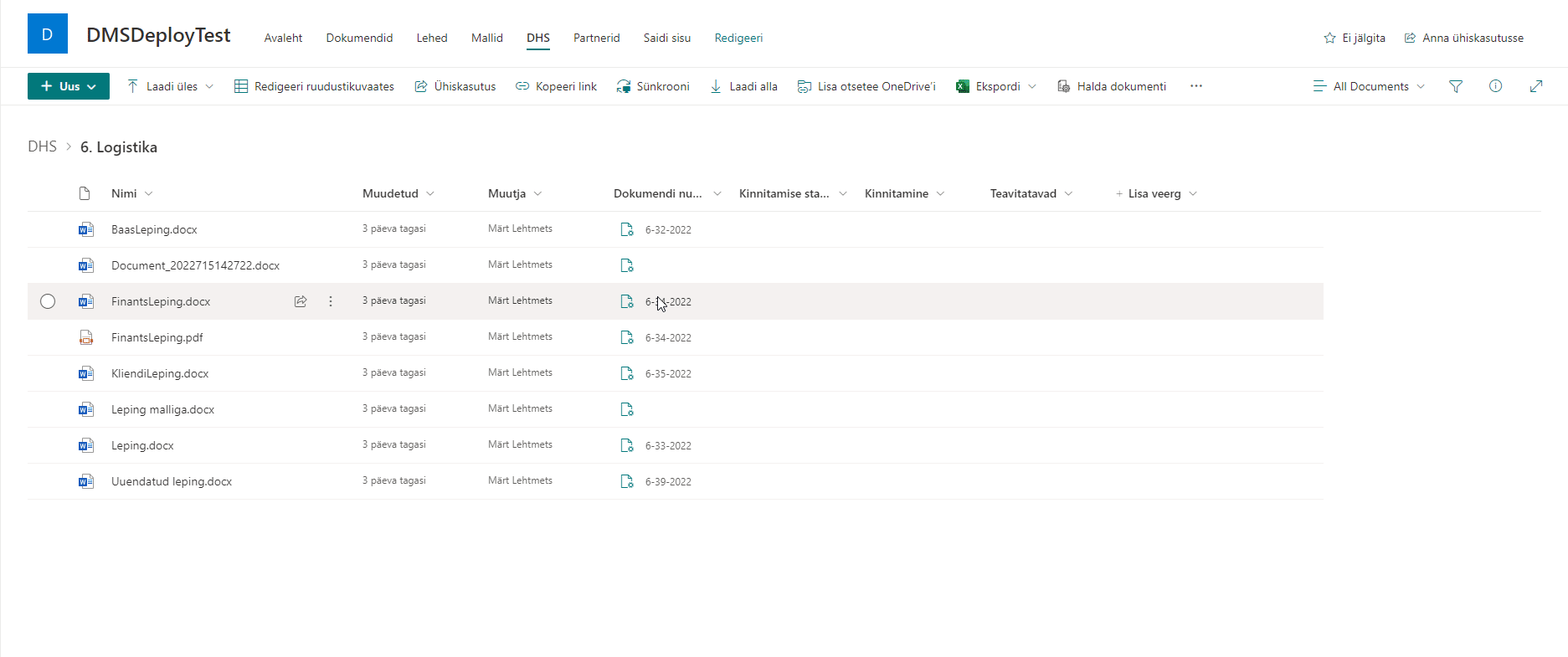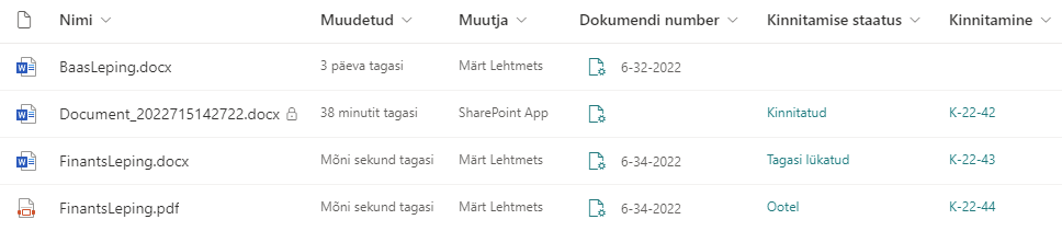 Dokumendi Kinnitamise staatust saab näha „Kinnitamise staatus" veerus