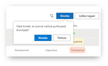Valitud puhkused kinnitatakse ning need kaovad 'Kinnita' vaatest ära