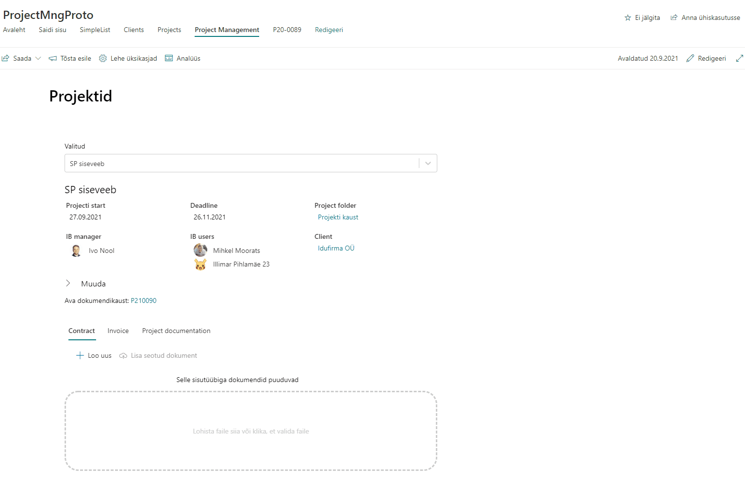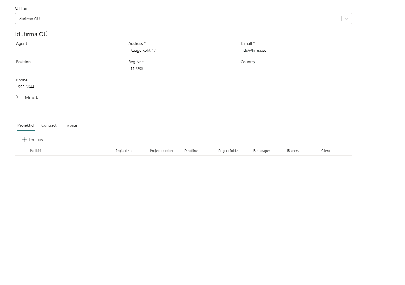 Projektihalduse veebiosa võimaldab keskselt hallata projekte. Esmalt luuakse klient/ettevõte, kellega soovitakse seostada uus projekt. Ühe ettevõttega võib seotud olla üks kuni mitu projekti.