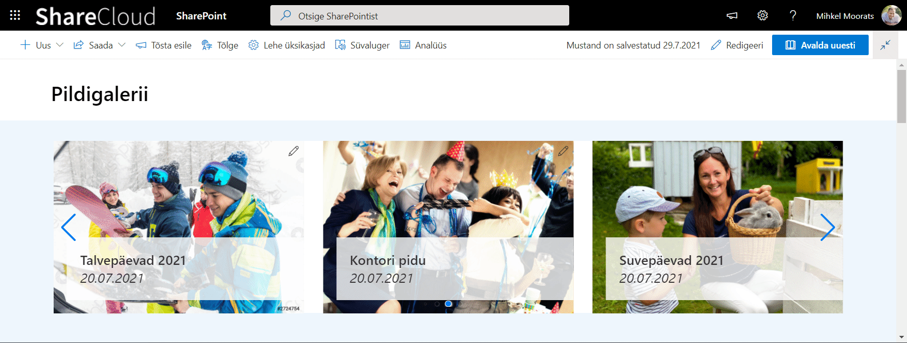 albumil klõpsates suunatakse kasutaja vastavasse albumi kausta pilte vaatama