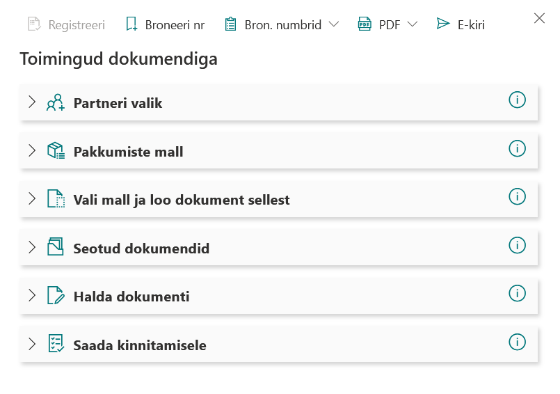 Oleme omalt poolt lisanud dokumentidega töö lihtsustamiseks eraldi toimingute paneeli, mis muudab dokumentide haldamise veelgi lihtsamaks.