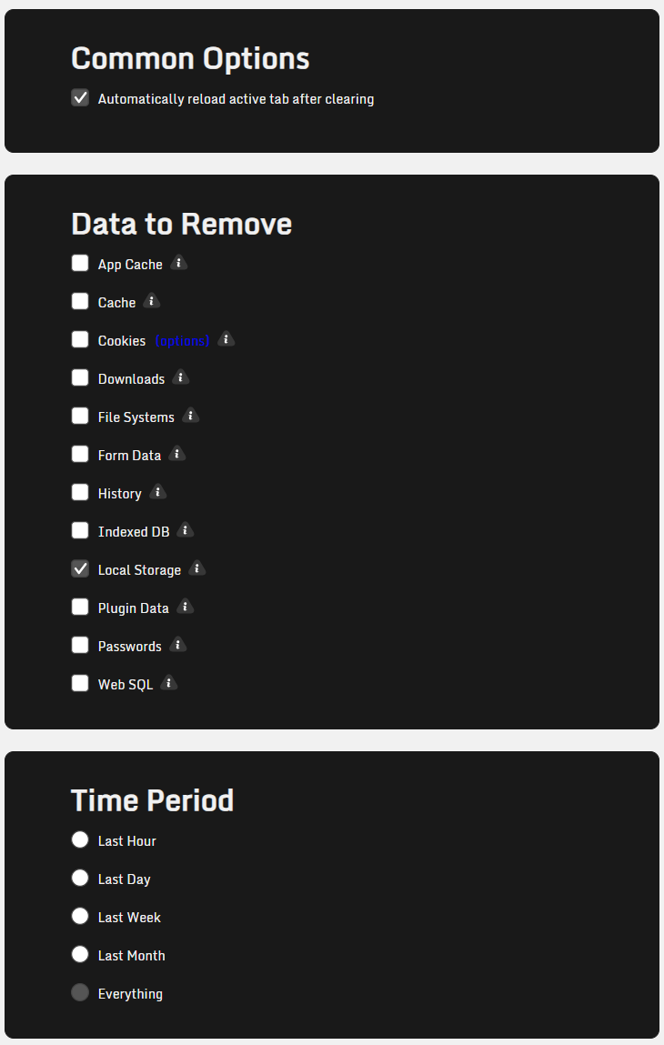 - Automatically reload active tab after clearing -> Selected