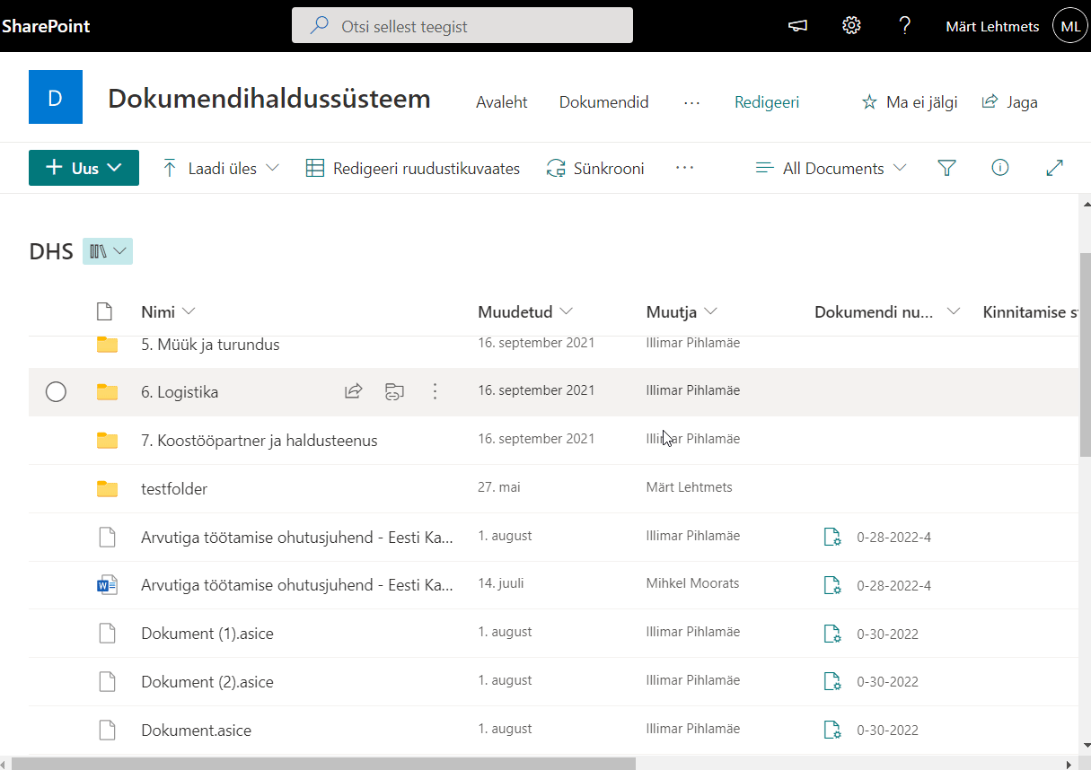 Vajutage „halda dokumenti” nupule, mis asub kas käsuriba või dokumendi numbri veerus