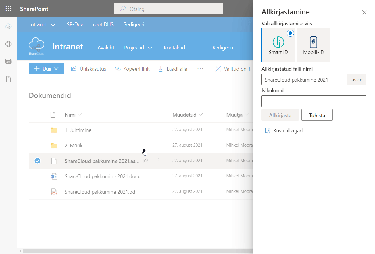Vajutage „Allkirjasta" nupule, mis asub käsureal