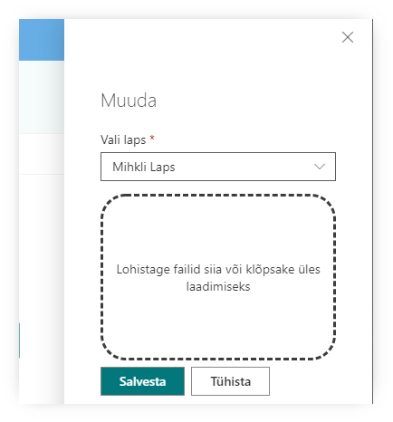 Lapsega seotud puhkuse sisestamisel süsteem avab paremas servas paneeli, kus saab valida lapse, kellega antud puhkus on seotud: