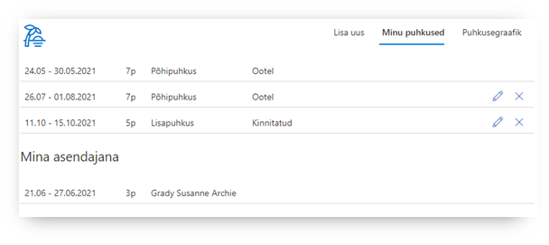 „Minu puhkused" vaates kuvatakse välja kõiki: