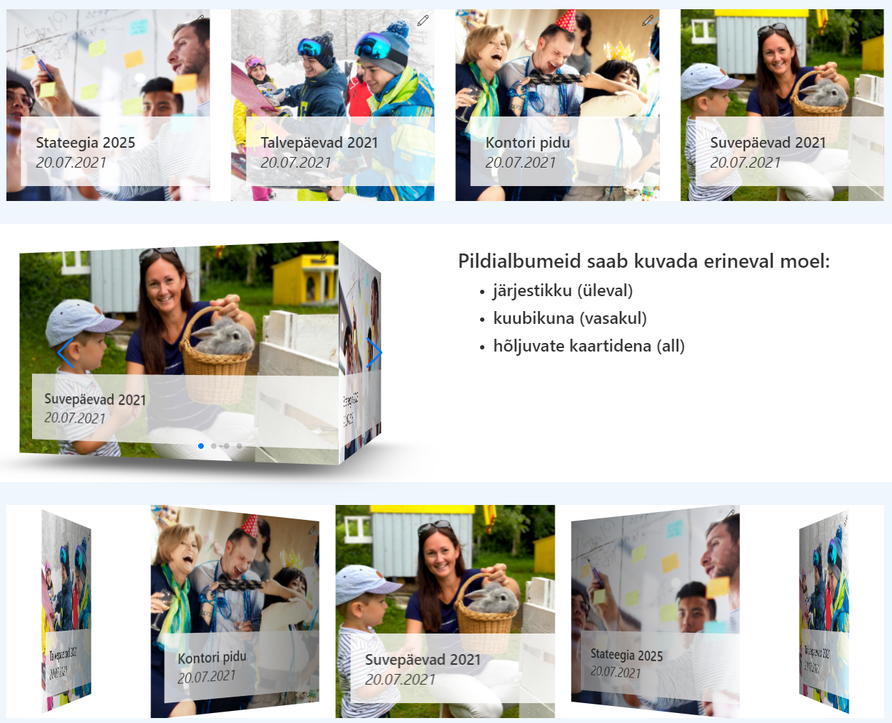 albumil klõpsates suunatakse kasutaja vastavasse albumi kausta pilte vaatama